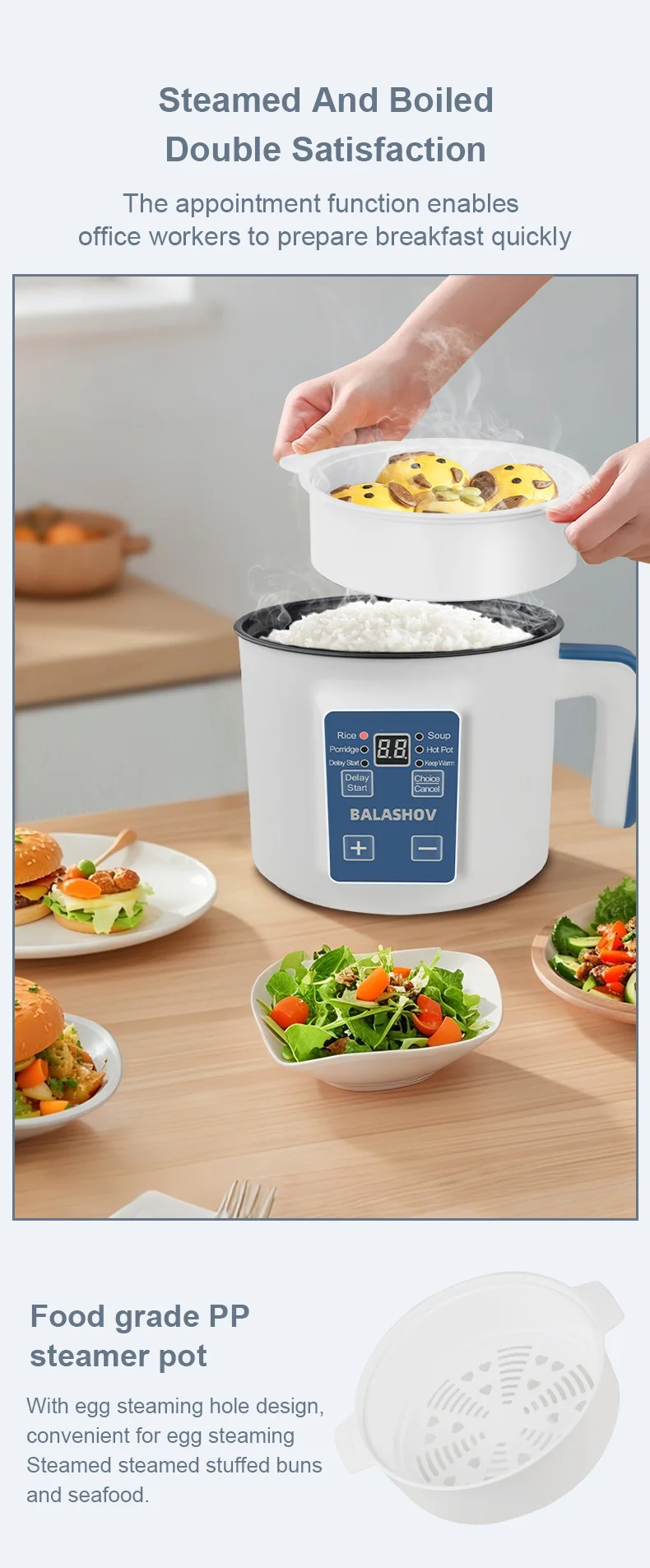يتميز هذا الطباخ متعدد الاستخدامات بوعاء غير لاصق لسهولة التنظيف، ومؤقت تشغيل ميكانيكي لسهولة التشغيل. ما عليك سوى إضافة الأرز والماء، ثم الضغط على زر التشغيل، واستمتع بوجبات مطبوخة بإتقان.