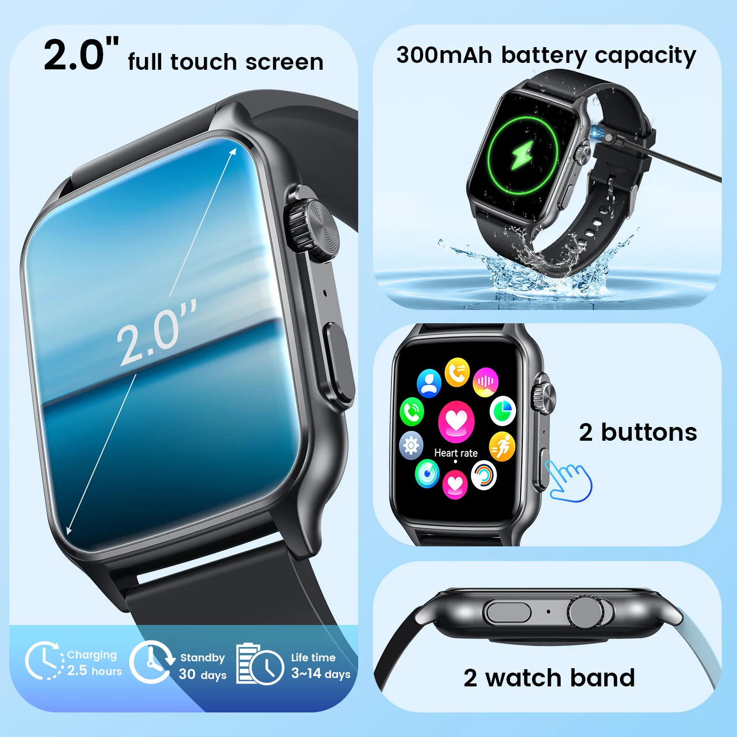 ساعة ذكية مقاس 1.96 بوصة للرجال والنساء، مع إمكانية الرد على المكالمات/الاتصال اللاسلكي، وأكثر من 100 وضع رياضي، ساعة ذكية تعمل بالذكاء الاصطناعي لهواتف iPhone/Android