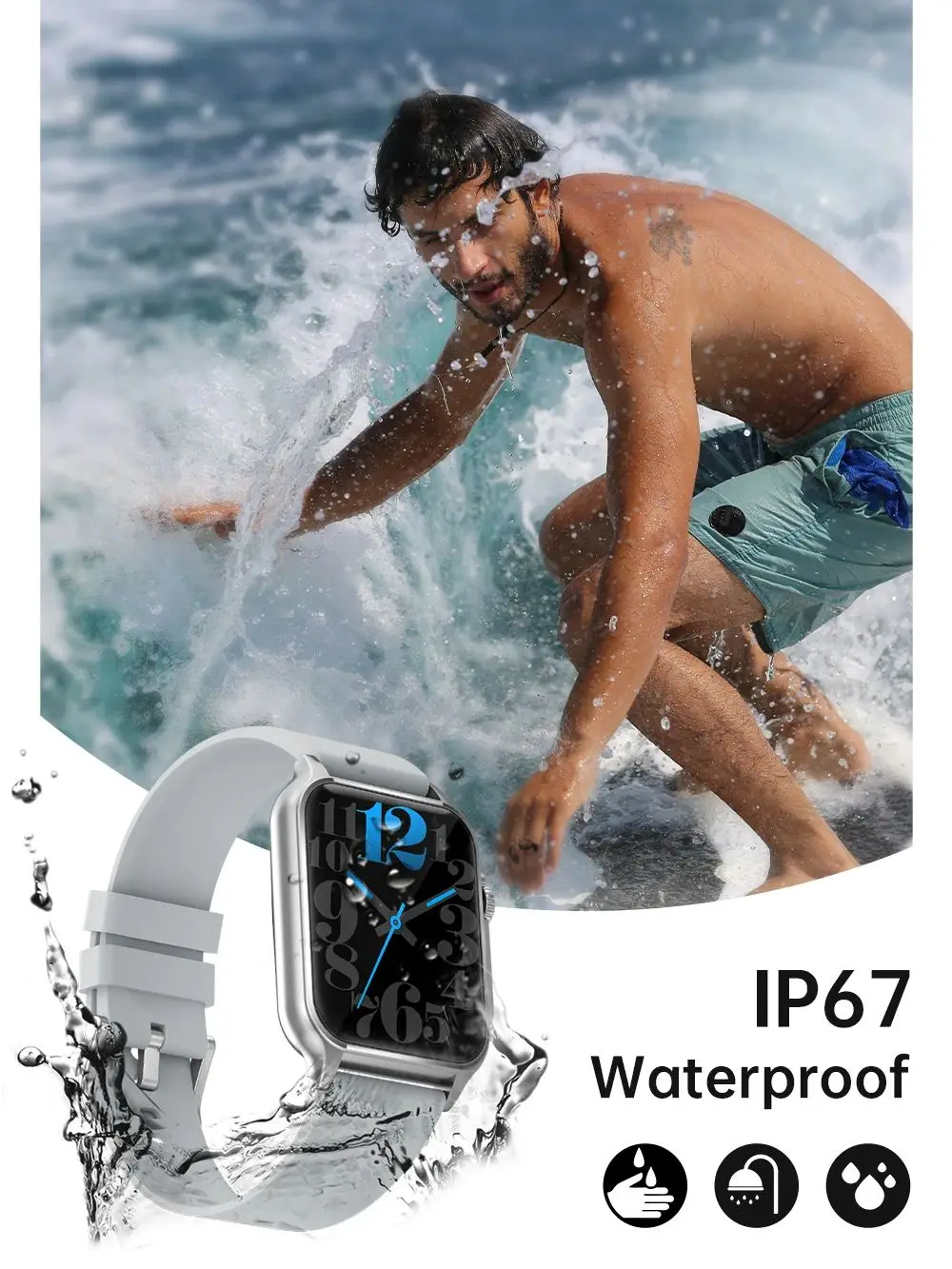 متوافقة مع كل من iPhone وAndroid، تتميز هذه الساعة الذكية بشاشة نابضة بالحياة مقاس 1.96 بوصة، ومقاومة للماء، وبطارية تدوم طويلاً. حسّن روتينك اليومي مع هذه التقنية المبتكرة القابلة للارتداء.