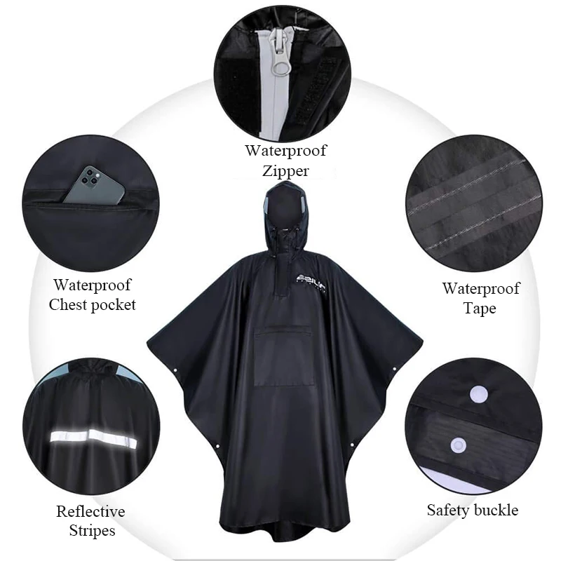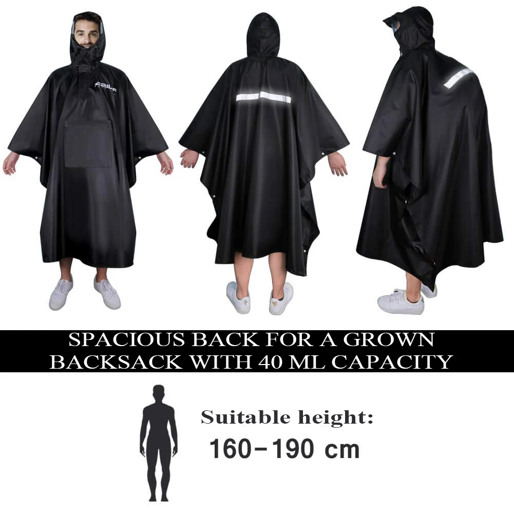 معطف واق من المطر من قماش أكسفورد 210T، متعدد الوظائف، حقيبة ظهر، معطف واق من المطر، معطف واق من المطر بغطاء رأس للبالغين، مناسب للمشي لمسافات طويلة وركوب الدراجات في الهواء الطلق