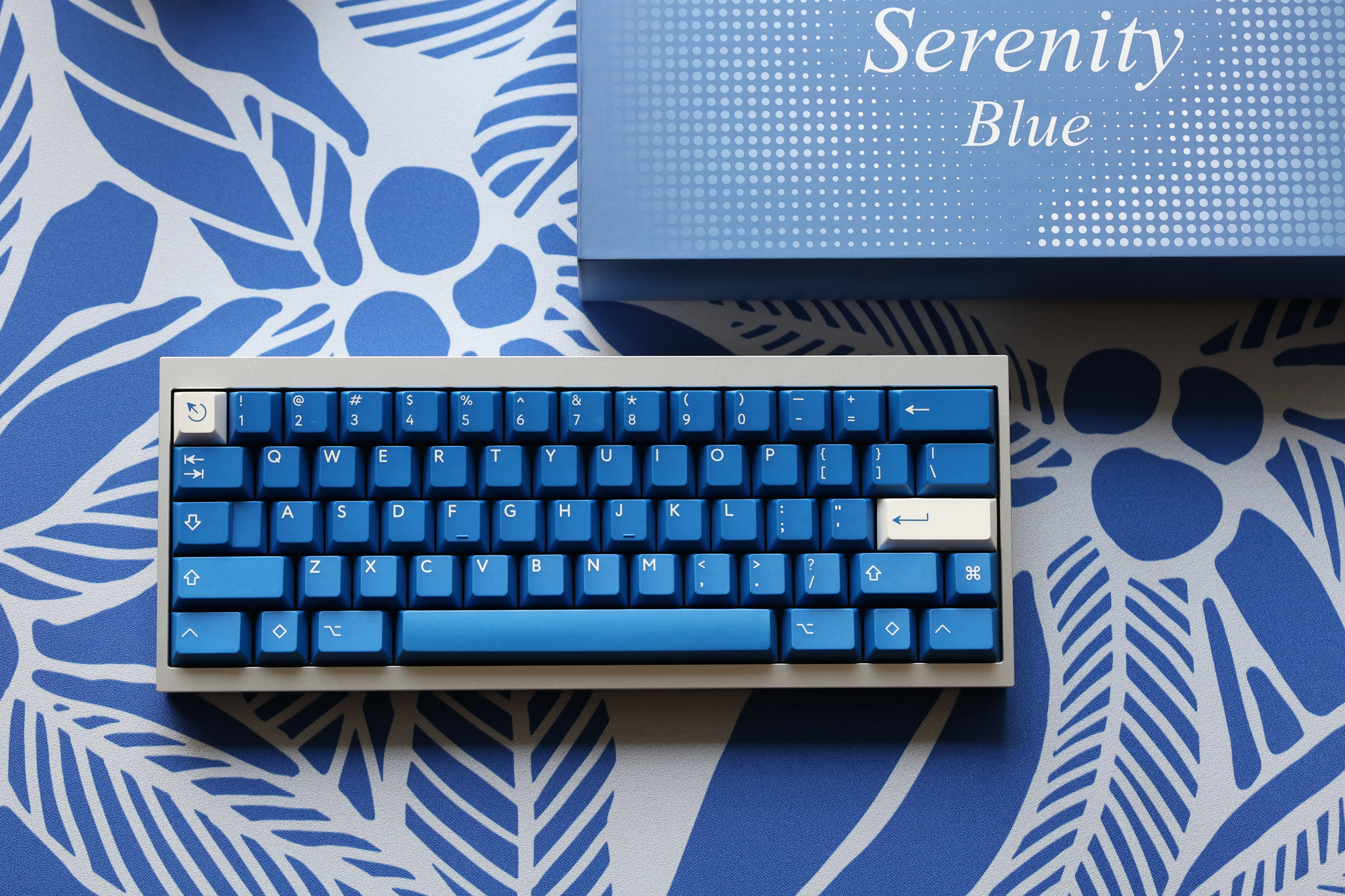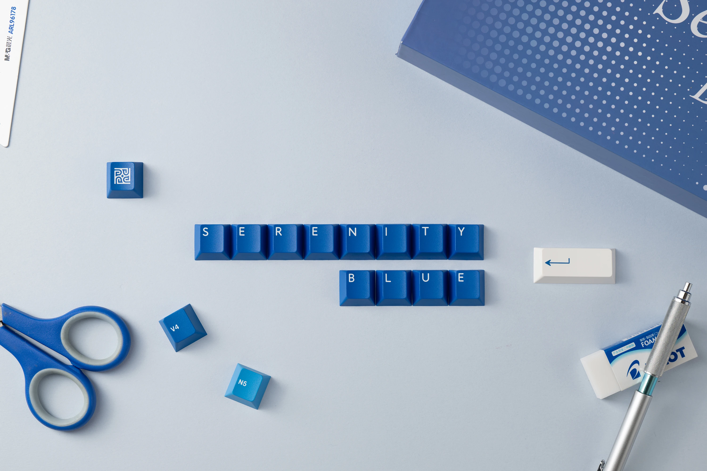 مجموعة أساسية من مادة PBTfans Serenity Blue PBT، وملف Cherry، ومفاتيح Cherry MX مزدوجة اللقطات، ونسخ طبق الأصل من طراز MX