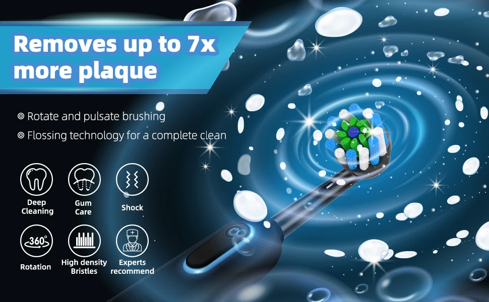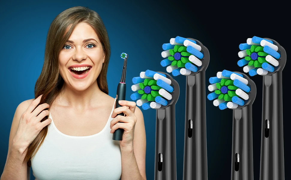 تتميز رؤوس الفرشاة بزاوية فريدة تبلغ 16 درجة، مما يُنظف بفعالية على طول خط اللثة ويصل إلى عمق الأسنان، مما يضمن إزالة فائقة للبلاك مقارنةً بفرش الأسنان اليدوية. متوفرة باللونين الأسود والأبيض، بكميات متنوعة، بما في ذلك 4، 8، 12، أو 16 قطعة، ومُعبأة في عبوة بلاستيكية مريحة.