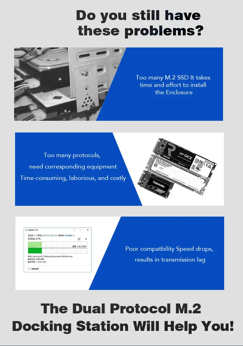 مزود بواجهة USB خارجية، ويوفر سرعات قراءة وكتابة مذهلة عبر الإنترنت تصل إلى 10 جيجابايت. يتوفر الطراز بثلاثة إصدارات: SD01A لـ M.2 SATA NGFF، وSD02A لـ M.2 NVMe، وSD03A لـ M.2 NGFF أو NVMe. يُرجى العلم أن القرص الصلب غير مُضمن.