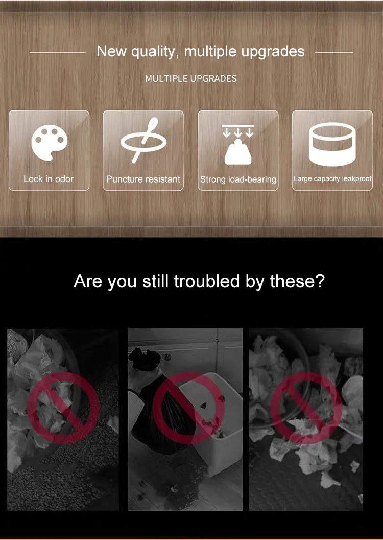 استمتع بإدارة نفايات سلسة بفضل تصميمنا سهل التمزيق وصلابتنا المزدوجة لمزيد من المتانة. اختر QUHE لمنزل أكثر نظافة وكفاءة.