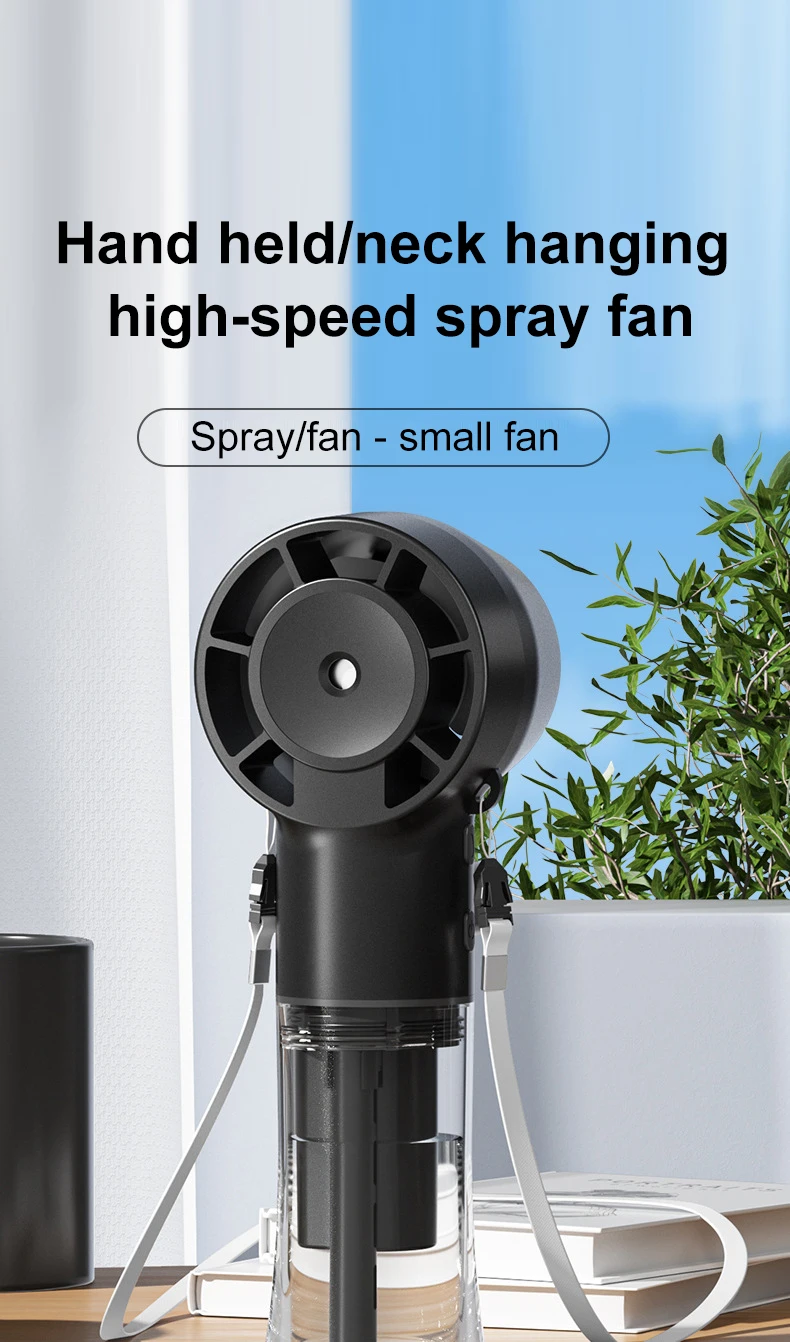 حافظ على انتعاشك وبرودتك مع مروحة الرش المحمولة. يجمع هذا الجهاز المبتكر بين مروحة عالية السرعة وخاصية الترطيب، مثالي للأيام الحارة. صُممت هذه المروحة لراحة أكبر، ويمكن ارتداؤها حول رقبتك، مما يتيح لك استخدامها دون استخدام يديك.
