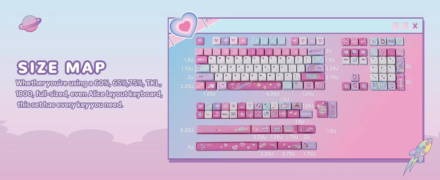 نقدم لكم مجموعة أغطية مفاتيح KiiBOOM x Elyxirine Digital Dreams: Pastel Y2K، وهي مجموعة نابضة بالحياة من 144 مفتاحًا مصممة للوحات المفاتيح 60%، 65%، 75%، TKL، والحجم الكامل. تعكس هذه المجموعة جوهر عصر Y2K بألوانها الباستيل الناعمة وزخارفها الكلاسيكية، وهي مثالية لعشاق جماليات أوائل الألفية الثانية.