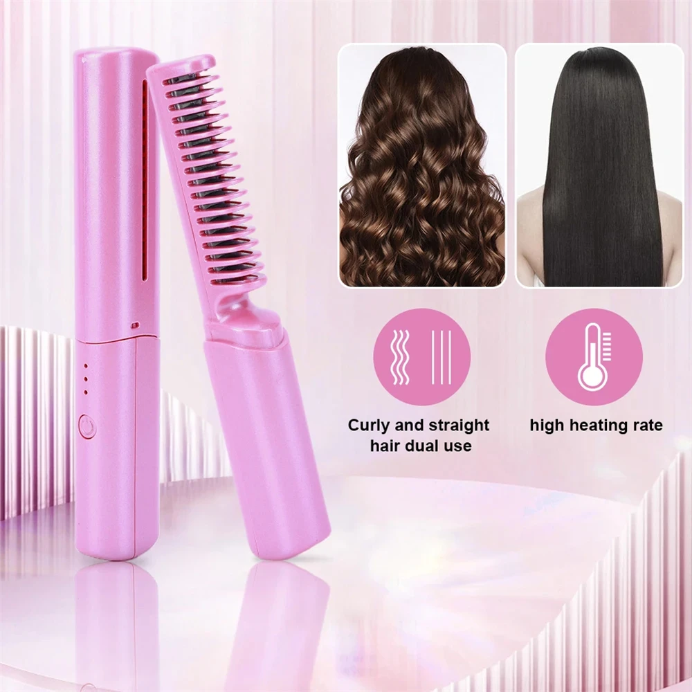 مشط شعر مستقيم كسول، مكواة فرد شعر لاسلكية متعددة الوظائف، مشط شعر منزلي، بكرة شعر مستقيمة، مشبك مزدوج الاستخدام