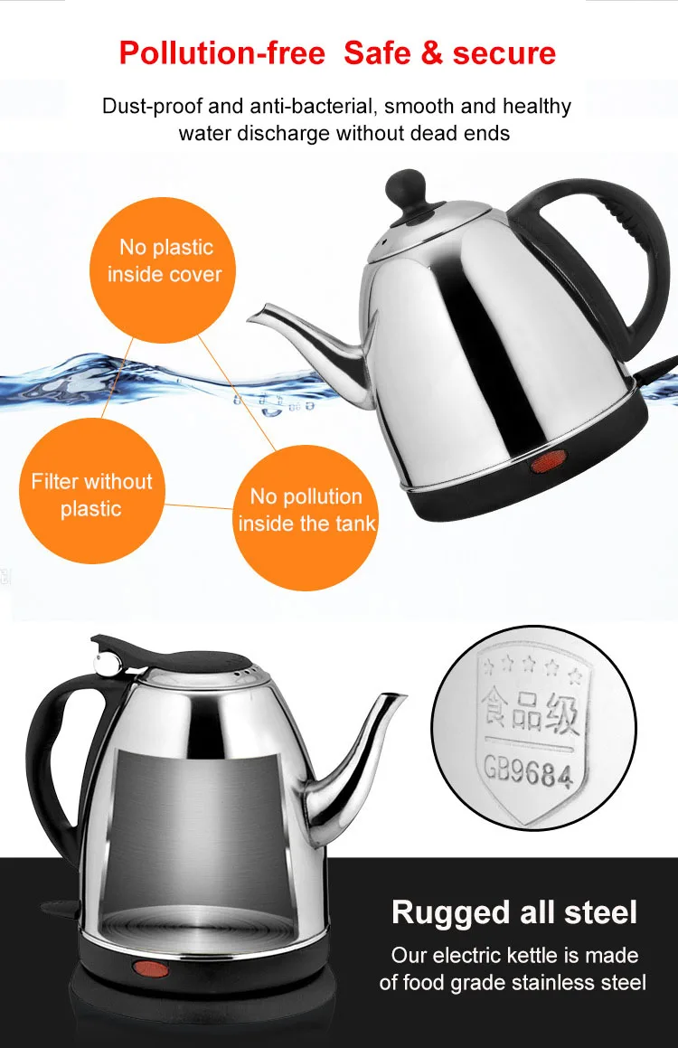 غلاية كهربائية طويلة الفم لتسخين الماء غلاية من الفولاذ المقاوم للصدأ مشروب ساخن إبريق شاي سخان طباخ إيقاف التشغيل التلقائي كوب غليان الاتحاد الأوروبي