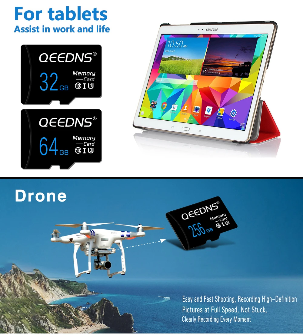 بطاقة ذاكرة Micro TF SD بسعة 256 جيجابايت و128 جيجابايت و64 جيجابايت و32 جيجابايت و16 جيجابايت و8 جيجابايت من الفئة 10 بطاقة ذاكرة Mini SD بسعة 256 و128 و64 و32 و16 جيجابايت وبطاقة فلاش TF للهاتف