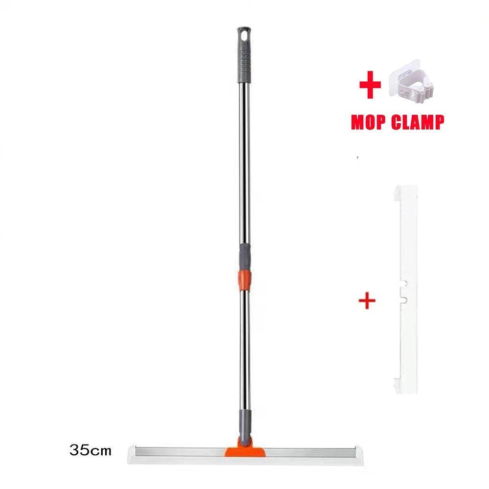 مكشطة أرضيات من السيليكون بمقبض طويل قابل للسحب، وفرشاة أرضيات تمتص الماء، وشريط تنظيف زجاج النوافذ متعدد الوظائف
