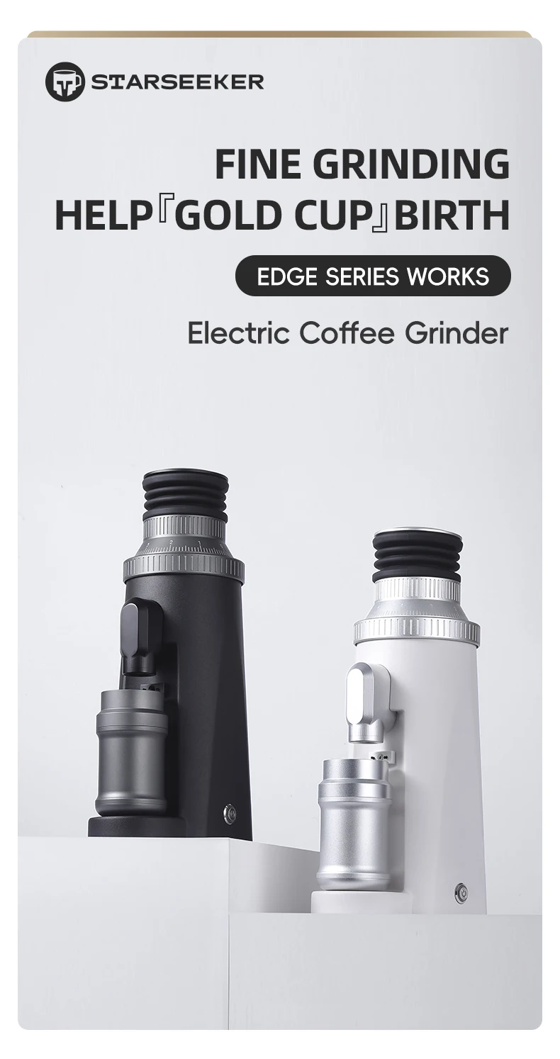 نقدم لكم مطحنة القهوة الكهربائية STARSEEKER EDGE63، تحفة فنية في تحضير القهوة. بفضل هيكلها الأنيق المصنوع من الألومنيوم الأسود البلازمي، تتميز هذه المطحنة بمظهرها الرائع وأدائها الاستثنائي.
