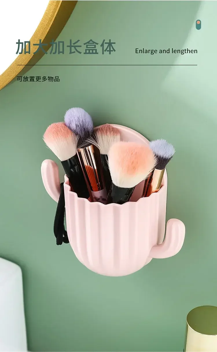 رف تخزين ذاتي اللصق على الحائط، حامل معجون أسنان، حامل فرشاة أسنان على شكل صبار، حامل فرشاة أسنان على الحائط، ملحقات حمام