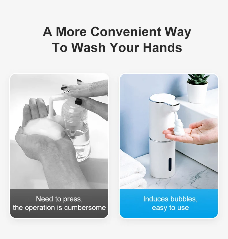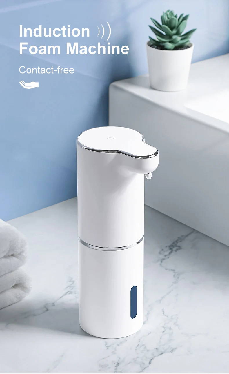 موزعات صابون رغوية أوتوماتيكية بيضاء سعة 300 مل، آلة رغوة ذكية، موزع صابون سائل بالأشعة تحت الحمراء، مضخة معقم لليدين