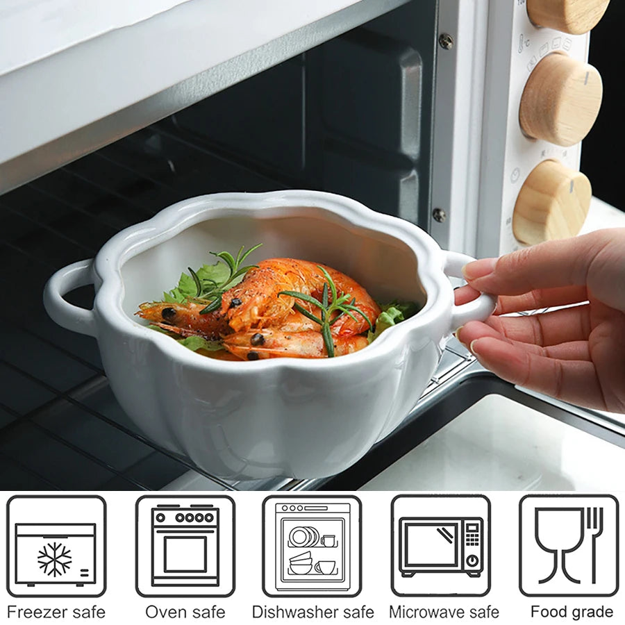 The Pumpkin Shape Bowl with Lid is designed for anyone looking to add a festive touch to their kitchenware, perfect for Halloween parties and seasonal gatherings. Made from eco-friendly ceramic, this 1.2L bowl is ideal for serving soups, salads, and cereals. It is safe for use in the oven, microwave, and dishwasher. Featuring two handles for easy and safe handling, this decorative and functional bowl comes in various colors to brighten your table during special occasions.