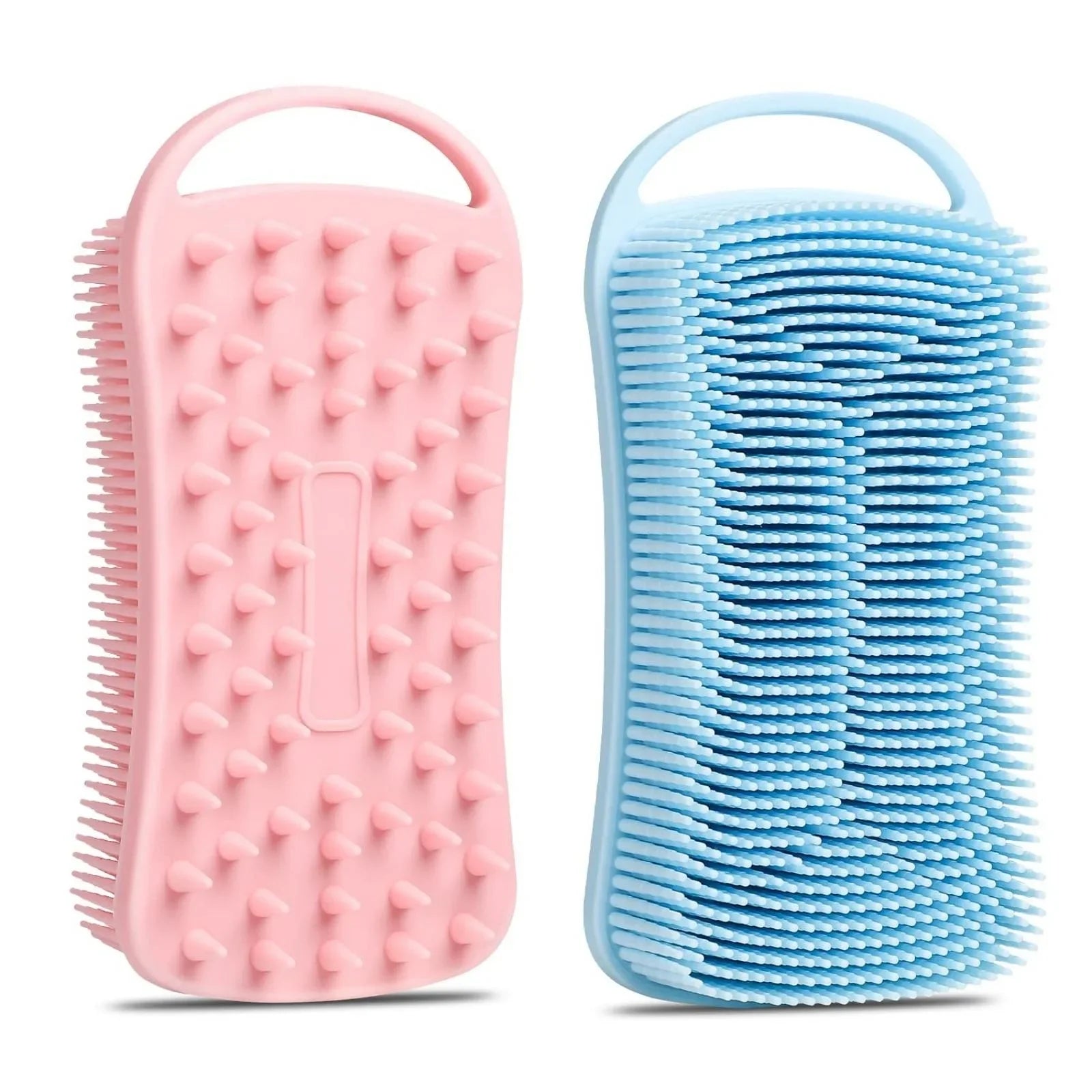 Experience a spa-like shower with the Silicone Shower Brush, a double-sided tool designed for both body scrubbing and scalp massaging.